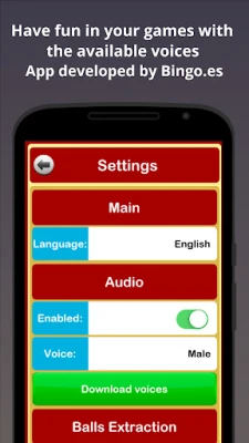 - Manual mode: The calling of the balls is made by tapping a button. Each time you tap the button, the app calls the next ball. If it is desired, you can silence the app so that the same person who is in charge of calling the balls is the one who announces the numbers.