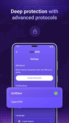 ✅ All types of data protocols. Gnu VPN works with PPTP VPN, OpenVPN, WireGuard VPN , SoftEther fast VPN, SSTP, IPsec IKEv2/IPsec, L2TP/IPsec.