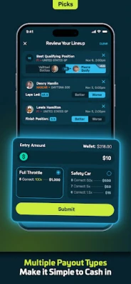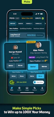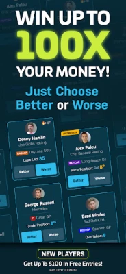 Test your skills in the first-ever fantasy pick-em game for motorsports. Make better/worse picks or driver matchups, and win up to 100X your money at every race! (Only available in the US.)
