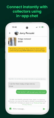 - Chat & Confirm - Discuss details with the collector through in-app messaging.