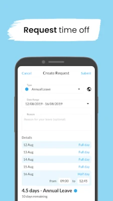 You will receive push notifications when your leave is requested, approved or when you receive a message.