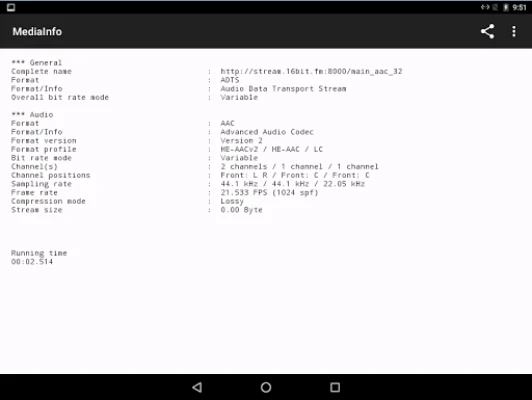 -Audio: format, codec id, sample rate, channels, bit depth, language, bit rate...