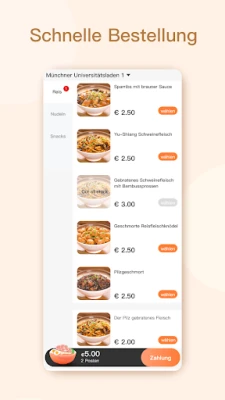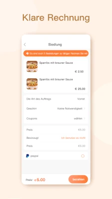 After downloading SmartFoodie, the user selects the corresponding ordering mode on the homepage. After entering the store selection, the user can select the corresponding store's dishes. After completing the meal selection, the user places an order and pays the corresponding amount, and the device performs meal production. The user can view the order status and historical orders in the order list.