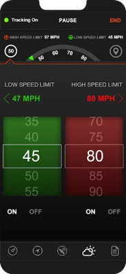 • High and Low speed limit alert system. Add minimum and maximum speed. Set the speed limit and drive calmly