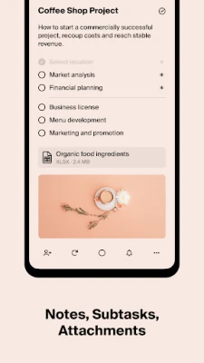 Note down your thoughts with rich-text editor or add subtasks if you need to split something into smaller tasks. Be on the road creating checklists to facilitate your event planning.